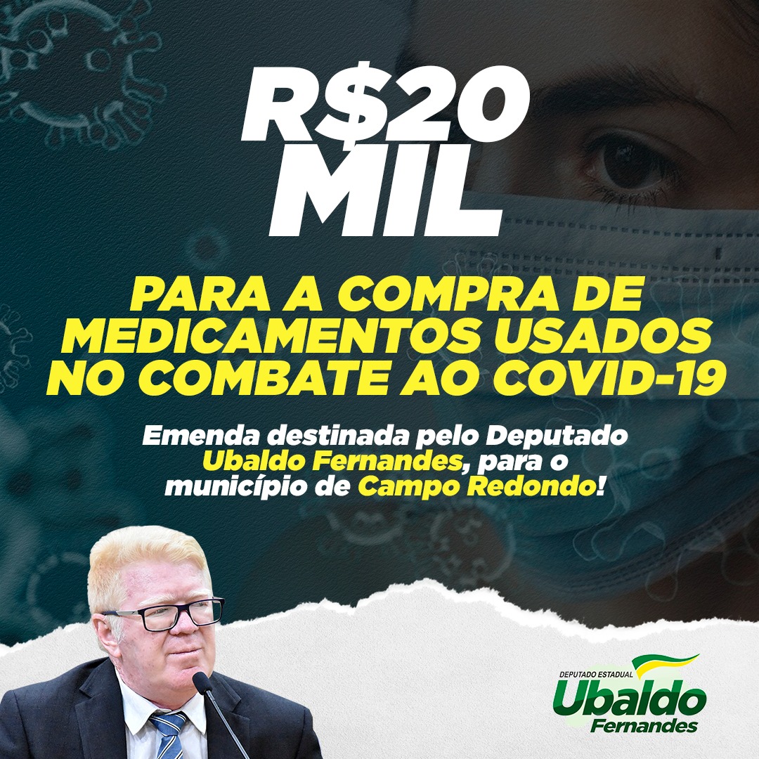 A Prefeitura Municipal de Campo Redondo recebeu um reforço no combate ao Covid-19. Desde o último dia 20, foi depositado na conta da Prefeitura o valor de R$ 20 mil destinado pela emenda parlamentar 212 do deputado estadual Ubaldo Fernandes (PL). A transferência dos recursos, fundo a fundo, foi autorizada por meio da Portaria 1948/2020.